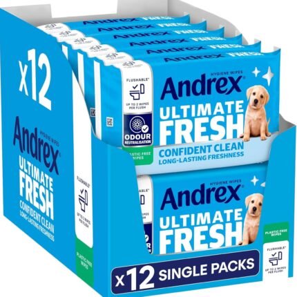 Andrex Ultimate Fresh Washlets. 12 Packs – Gentle. Biodegradable. Flushable Toilet Wipes for Everyday Hygiene. Use with Regular Toilet Roll for a Shower Fresh Clean